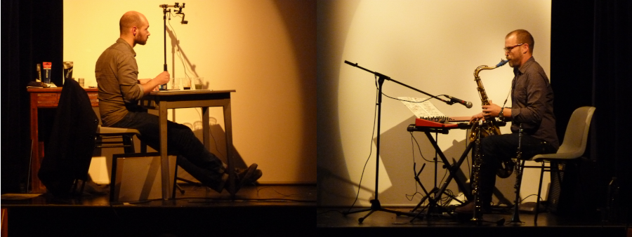 La tragique histoire d'Hamlet, prince du Danemark avec : Sébastien Vassant, dessins en direct Matthieu Donarier, saxophones, clarinettes, piano, compositions